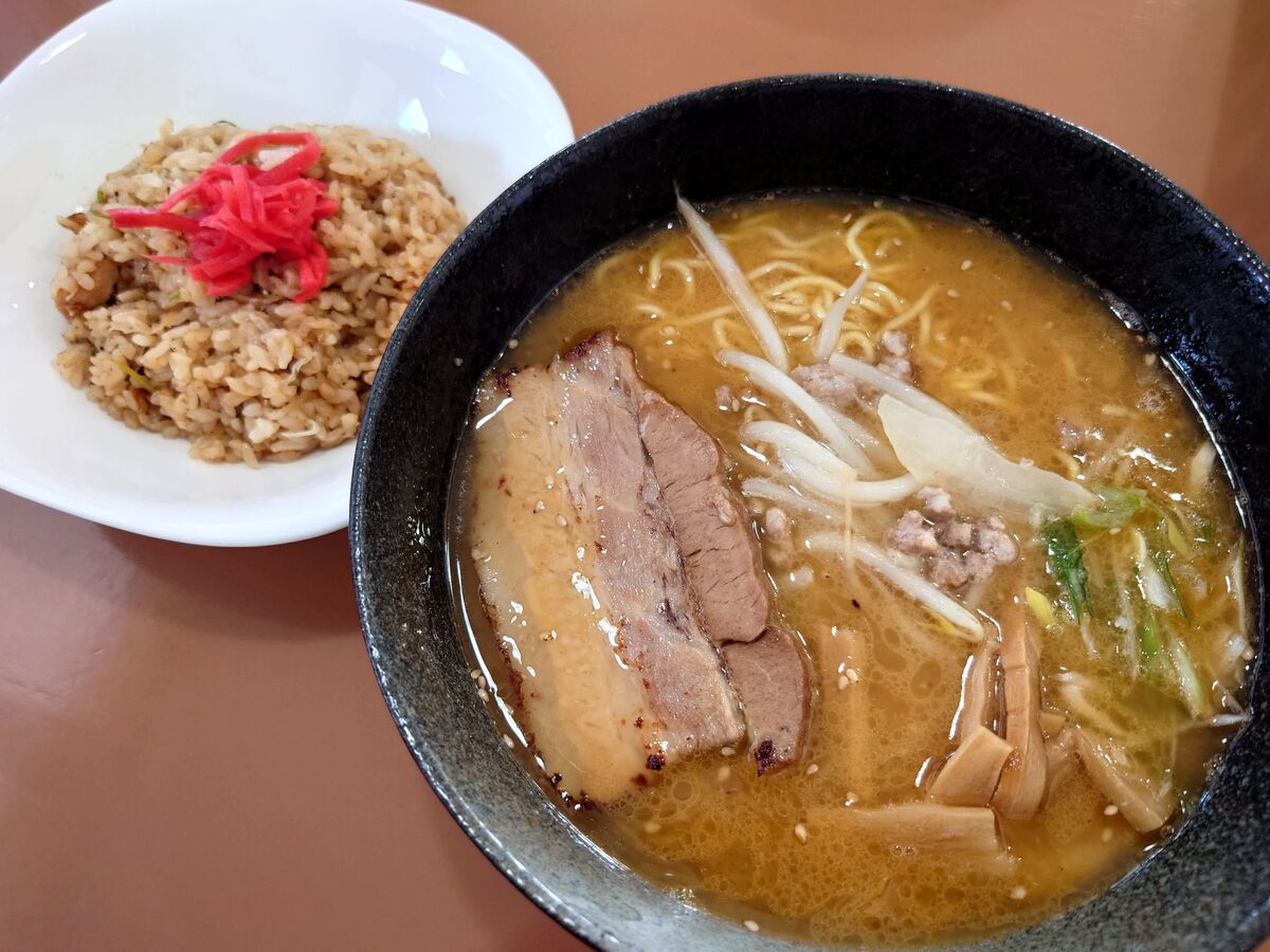 このお店には、ラーメンとのセットメニューが3種類あり、この日は半チャーハンのセットを、味噌ラーメンで注文。