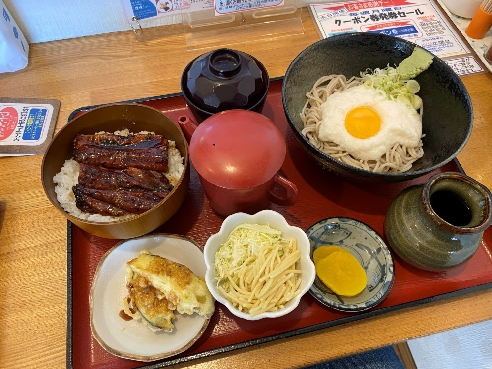 久しぶりに食べたうなぎの蒲焼はふっくらと焼かれていておいしかった!さらにそばには、とろろがたっぷりでスタミナがつきます。