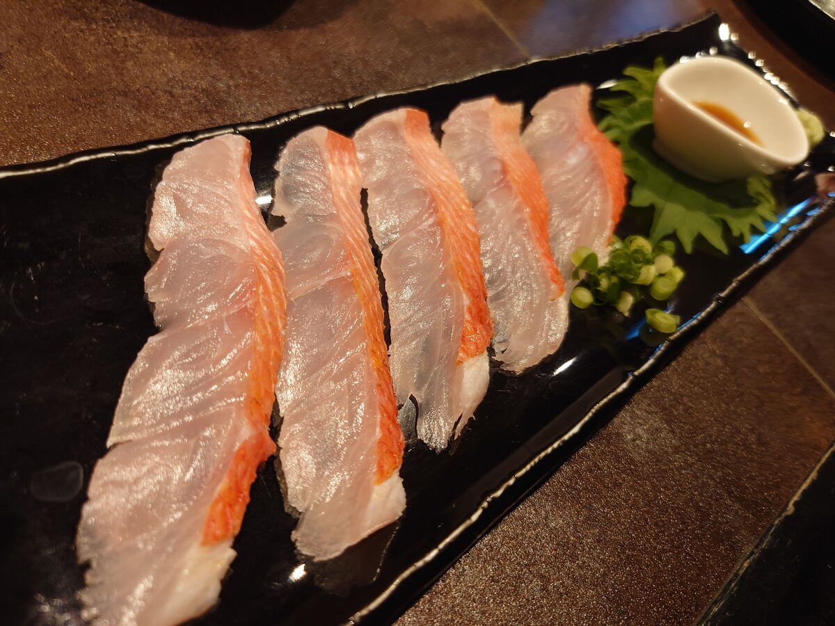 この高級感漂う美しい金目鯛のお刺身。さすがは、すが原。