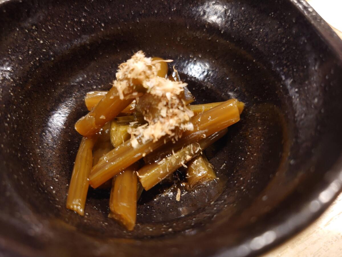 もう一品、葉わさびの正油漬もピリッと効いていて、これまた日本酒泥棒。