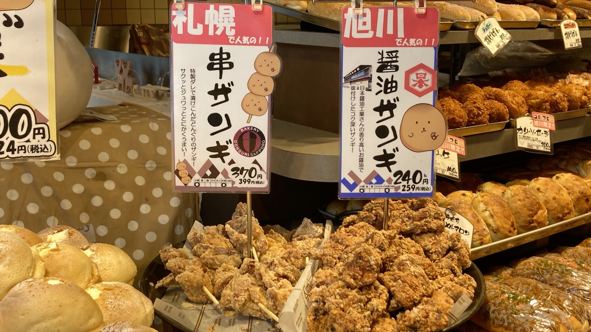 札幌のDONGURIにはない「コロコロ旭川」限定の肉じゃがコロッケ150円(税別)や、旭川の日本醤油工業の醤油を使用した醤油ザンギ240円(税別)、さらに豚すき焼きまん320円(税別)まで揃っています。
