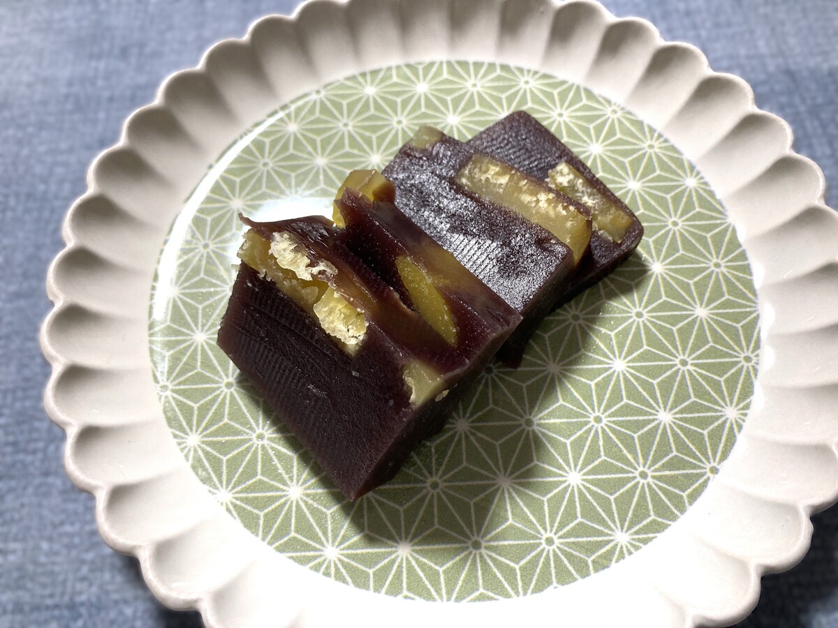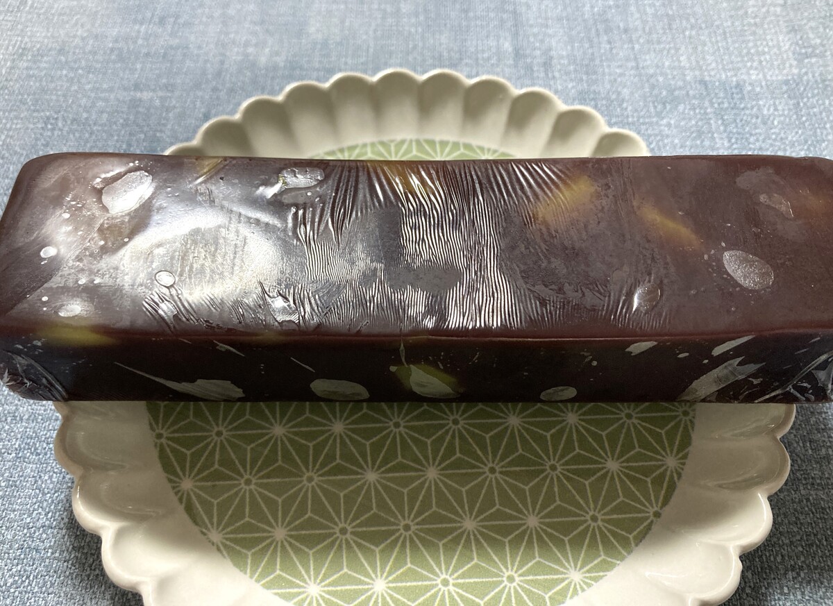 ずっしりと重みのある、ようかんはまるで金の延べ棒のよう。