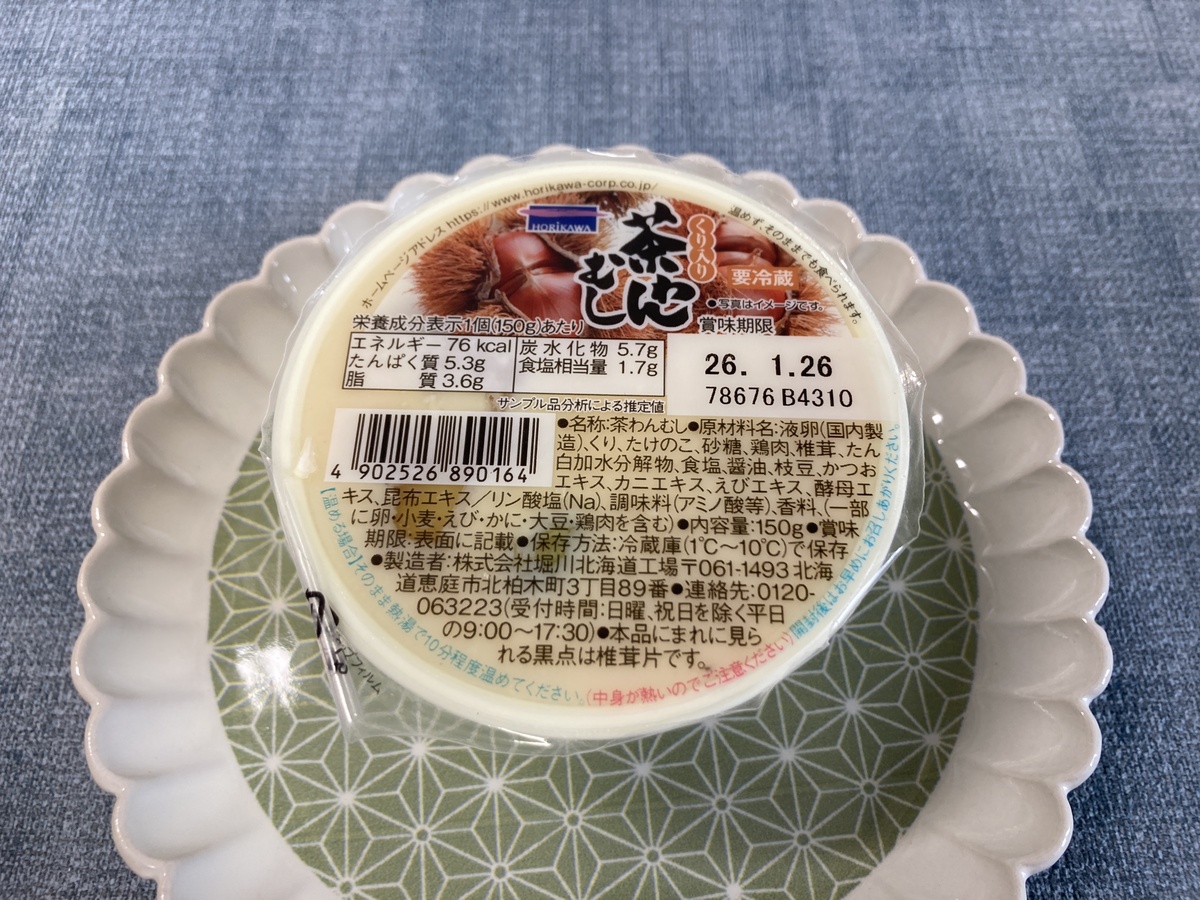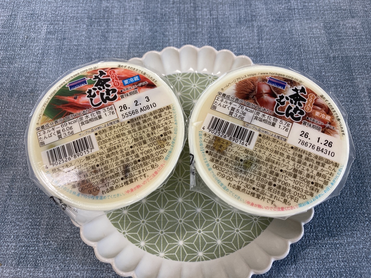 私がスーパーで購入したこの堀川の茶わん蒸しは、北海道限定の商品です。少し甘めの味付けですが、意外とクセになる美味しさ。お寿司と一緒に食べると口の中の塩分を中和してくれるので是非あわせてどうぞ。