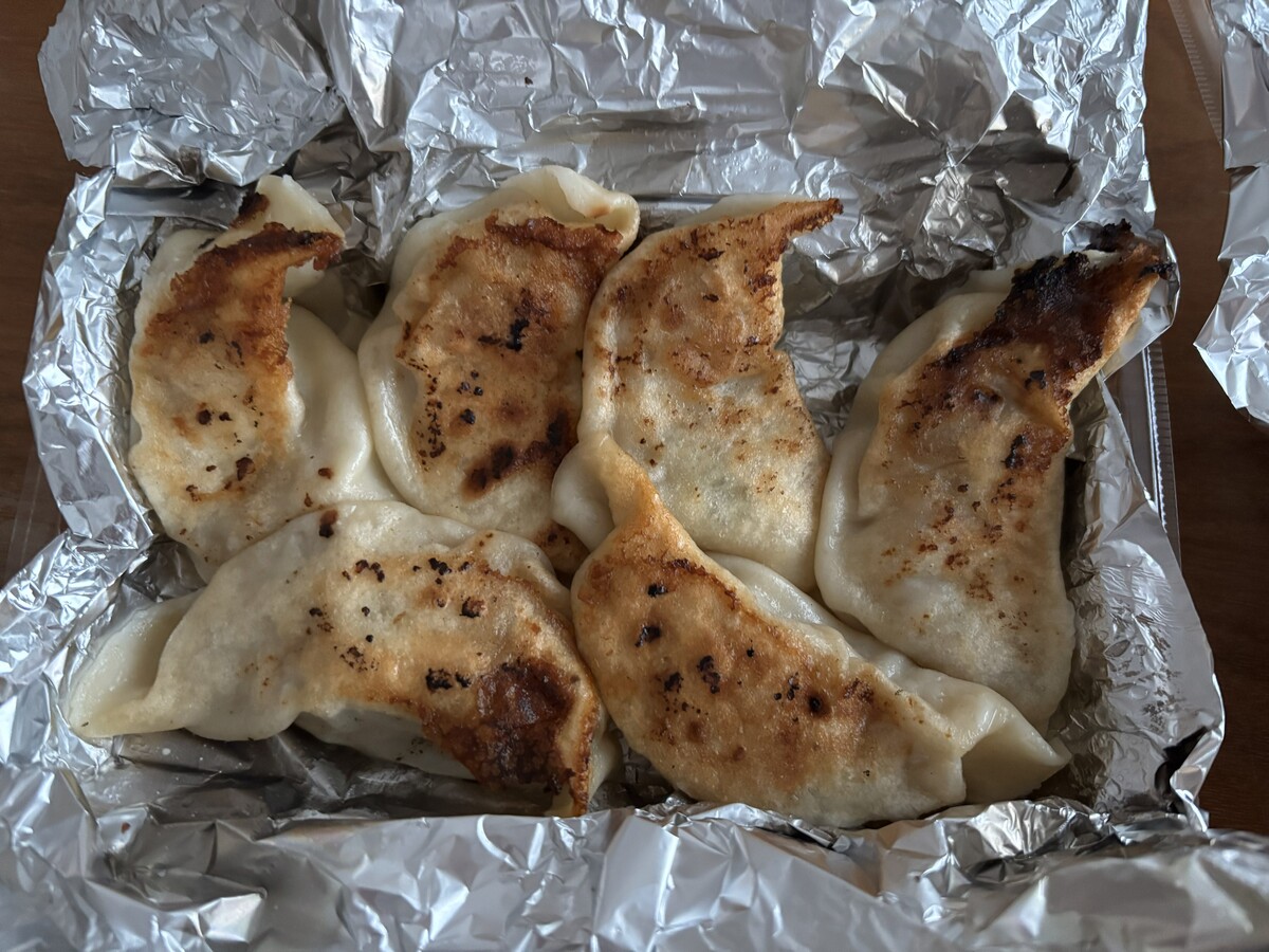 皮はもちっと厚めで、焼き目がパリッと香ばしい。中の餡は野菜と肉のバランスがよく、噛むとじゅわっと肉汁が広がり餃子は大きめなので何個かで満足してしまう量でした。