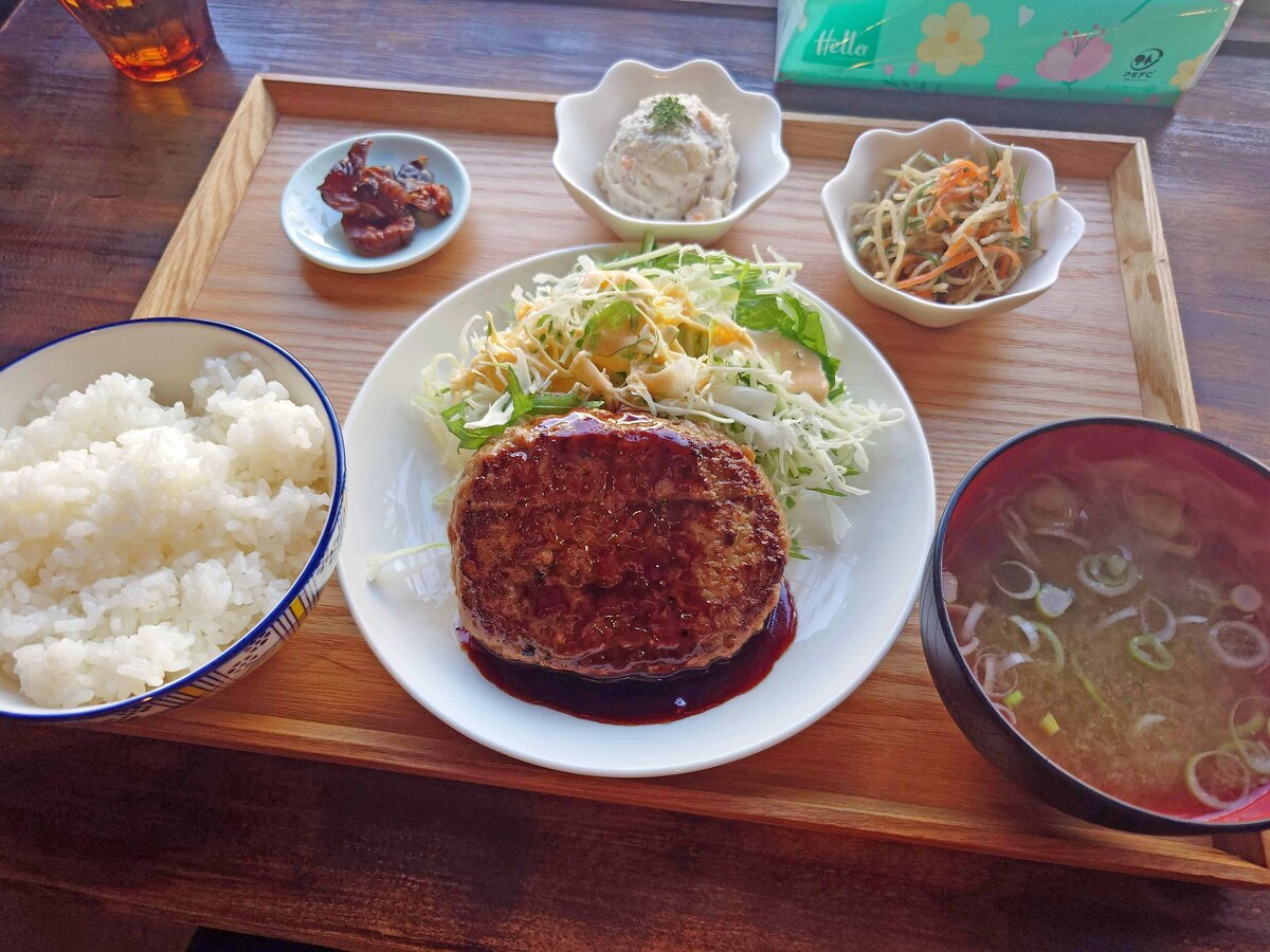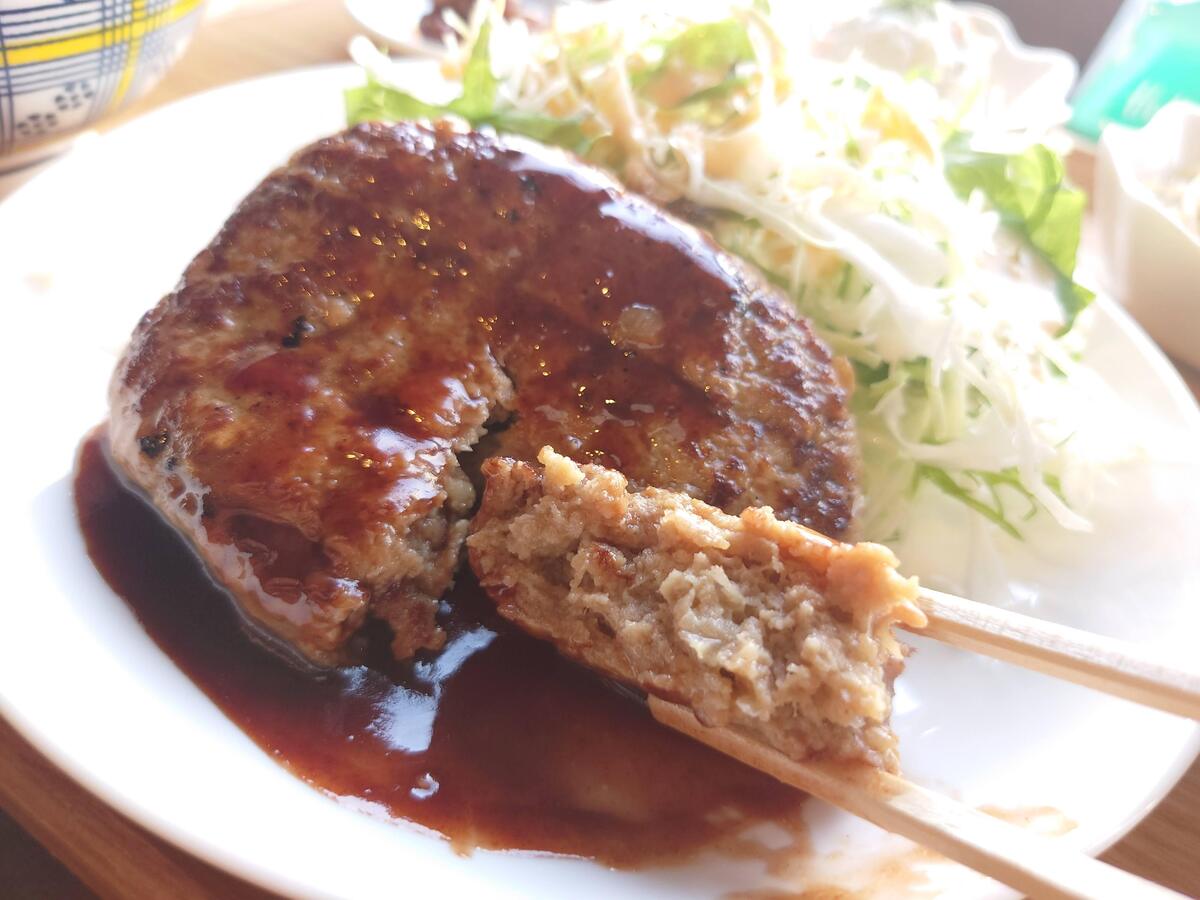 ふっくらでジューシーな厚みのあるハンバーグに、たっぷりのキャベツが嬉しい。