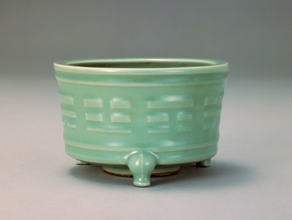 元〜明初頭のものは天龍寺青磁と呼ばれ釉薬に透明感が出て、色はやや黄色みを帯びた深い緑色になります。彫り模様(陰刻)などの装飾が増えます。