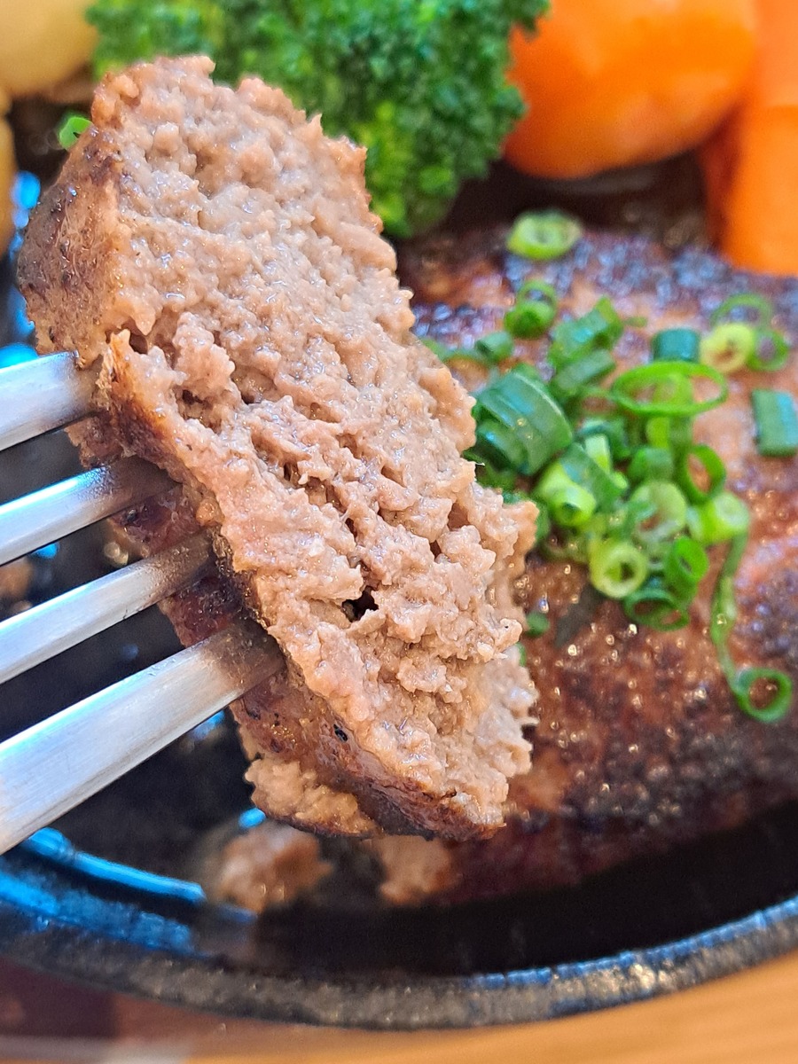 ハンバーグは、ナイフで切ると肉汁があふれ出します。