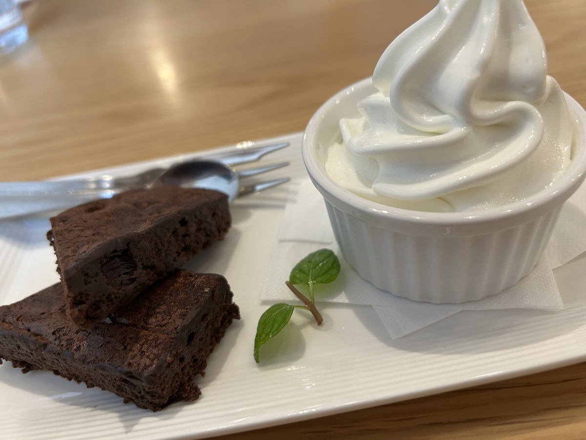 「ガトーショコラとソフトクリームのセット」を頼みました。