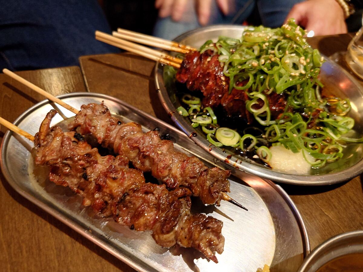 タレが絡んだレバ串に、刻みネギをたっぷりのせた一皿も最高だ。