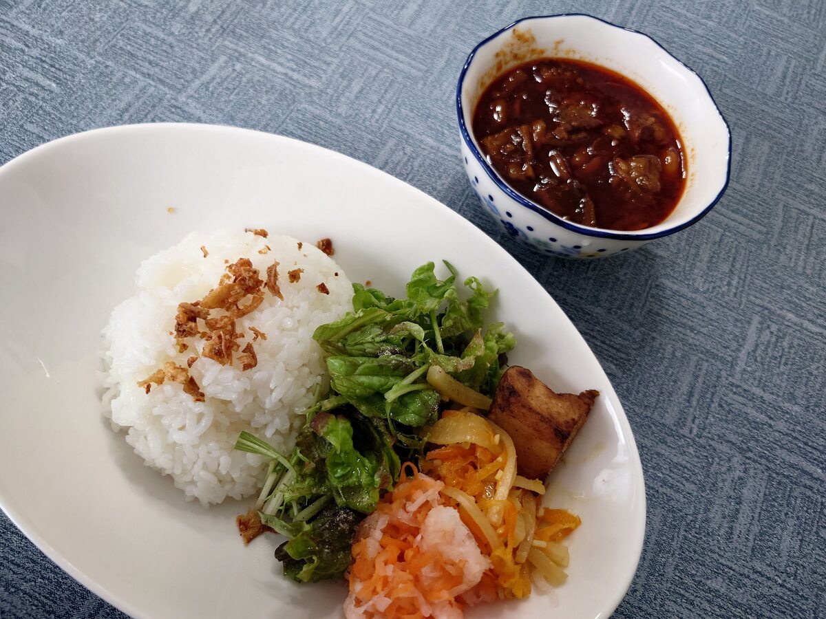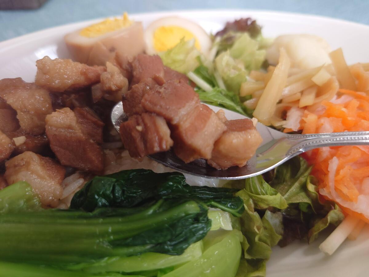 台湾の豚丼で、中華系スパイスがよく効いている。