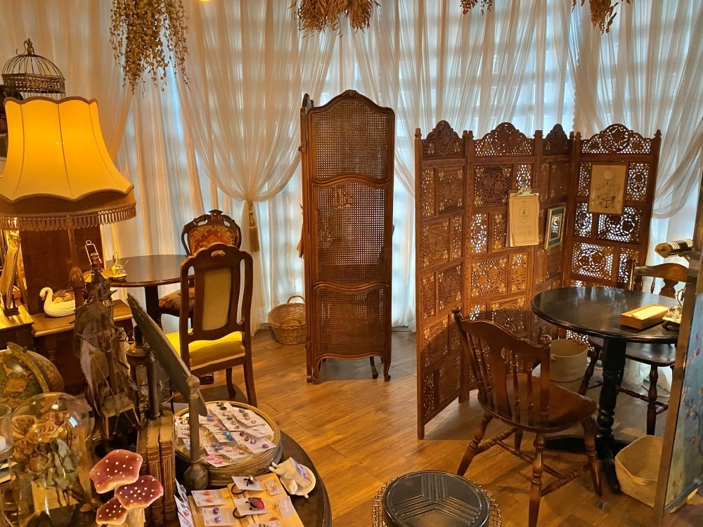 アンティーク調のインテリアでまとめられた店内は、幻想的な雰囲気。大人の落ち着いた空間を大切にしているため、入店できるのは中学生以上に限定しているので、ゆっくりと過ごすことができます。