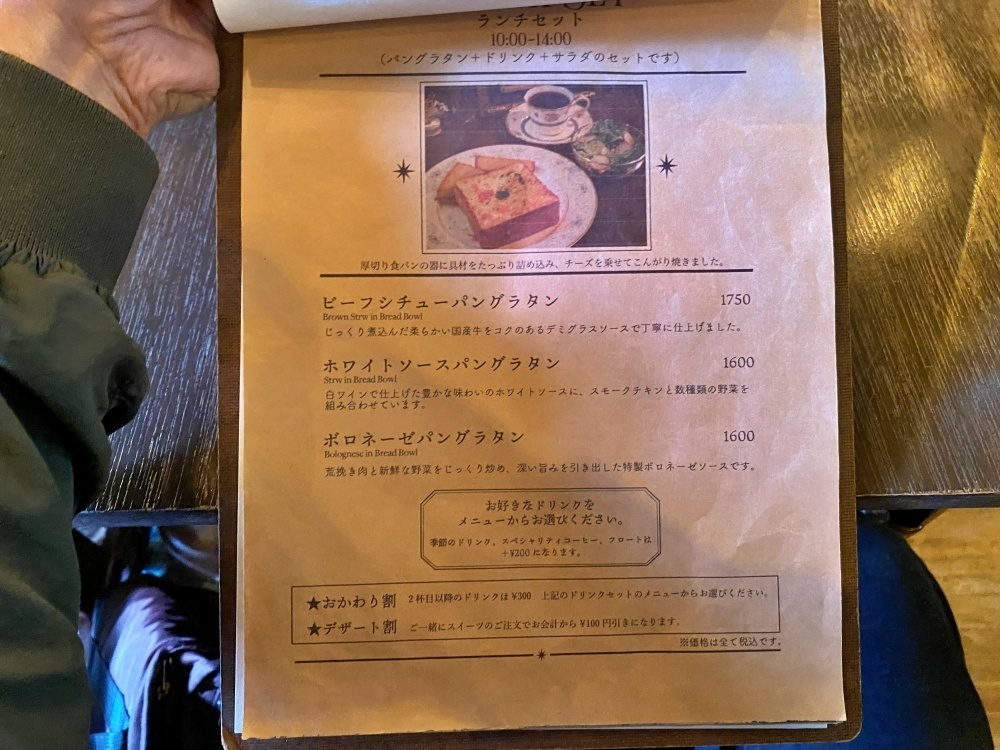 パングラタンは、ビーフシチュー・ホワイトソース・ボロネーゼの3種類から選べますが、「ビーフシチューパングラタン」を注文しました。