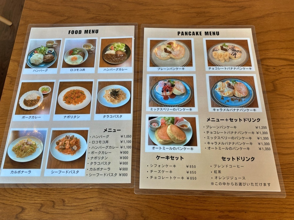 フードメニューには、ハンバーグやロコモコ丼、カレー、パスタなどもありますが、口コミによると「Cafe Ocelot(カフェ オセロット)」は、パンケーキが人気のようです。