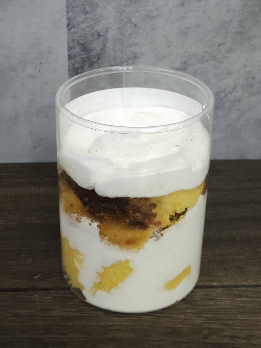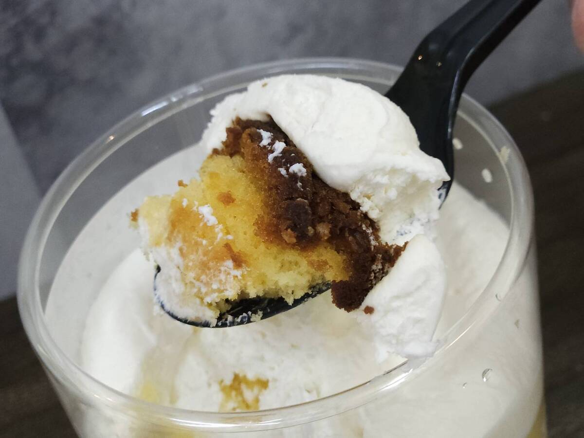 かすていらと生クリームをカップにたっぷりと詰め込んだ、贅沢なボリュームだけど価格を抑えたメニュー。