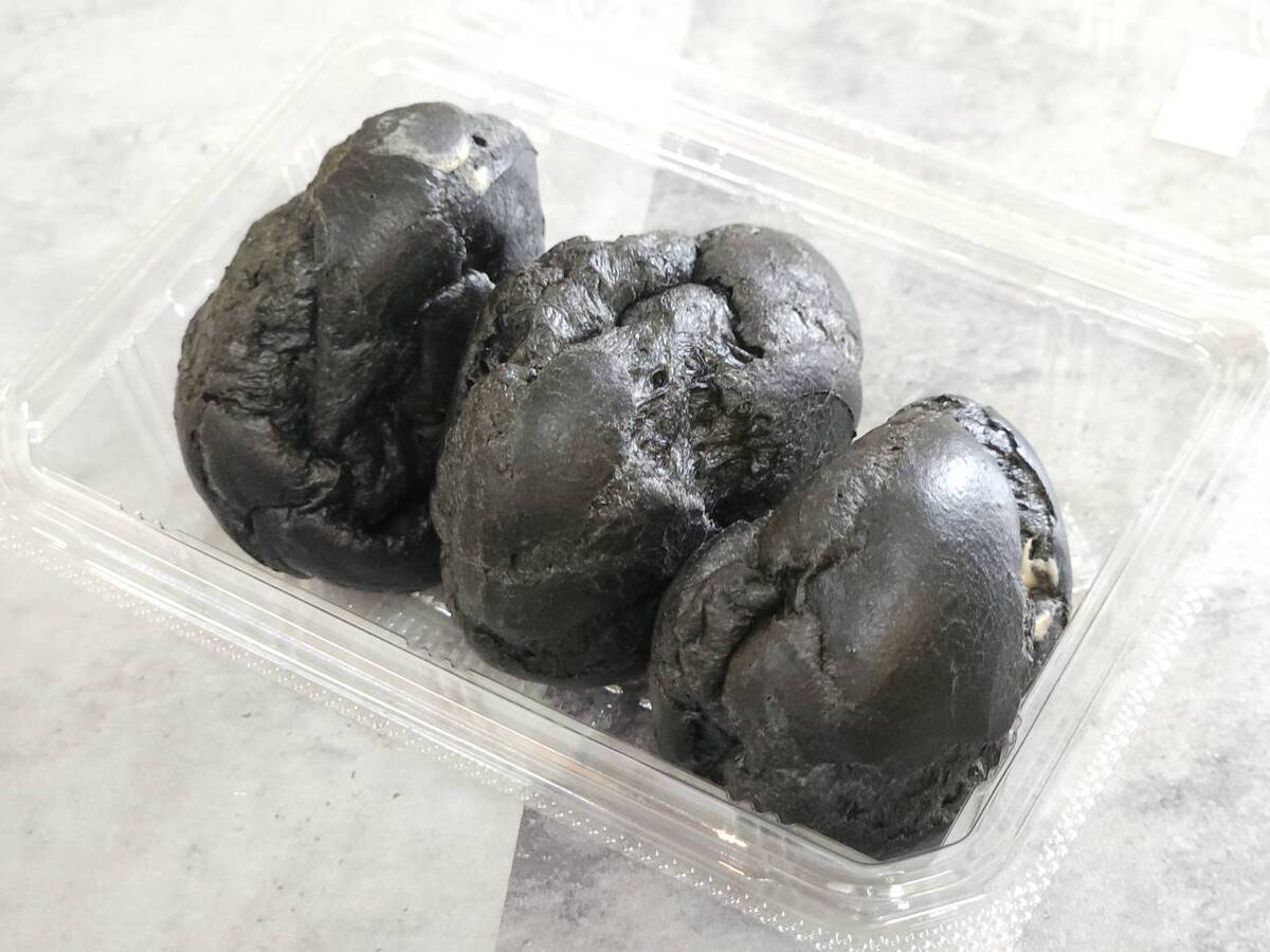 ポポロンシューはコーヒークリームが詰まった真っ黒な見た目が特徴のシュークリーム。