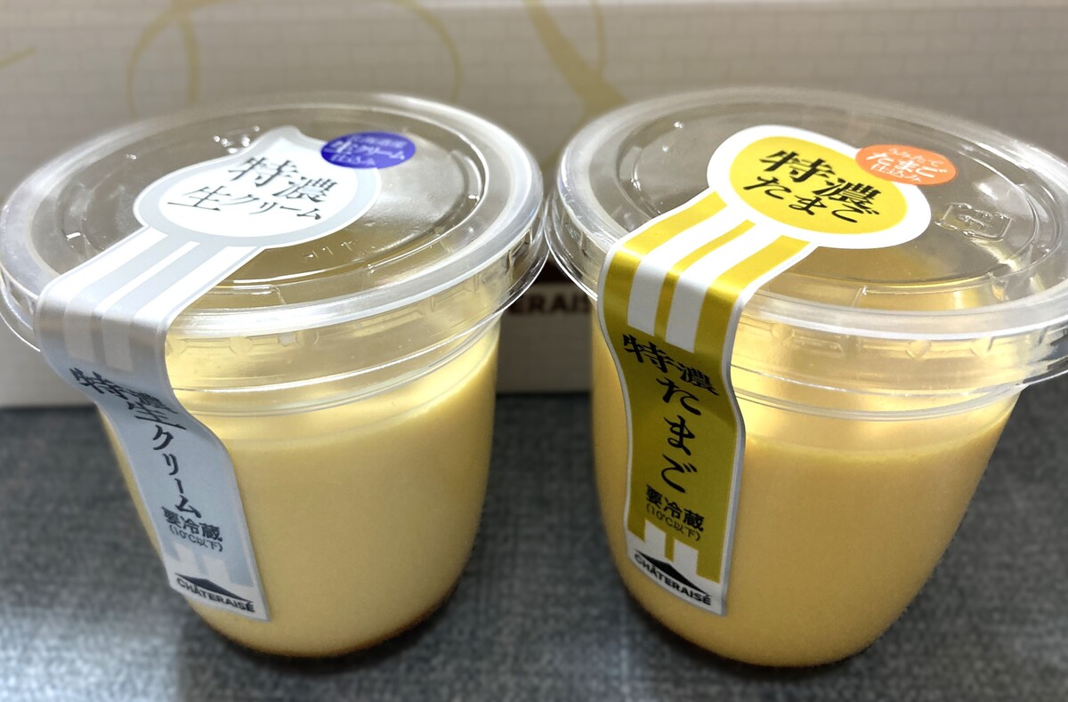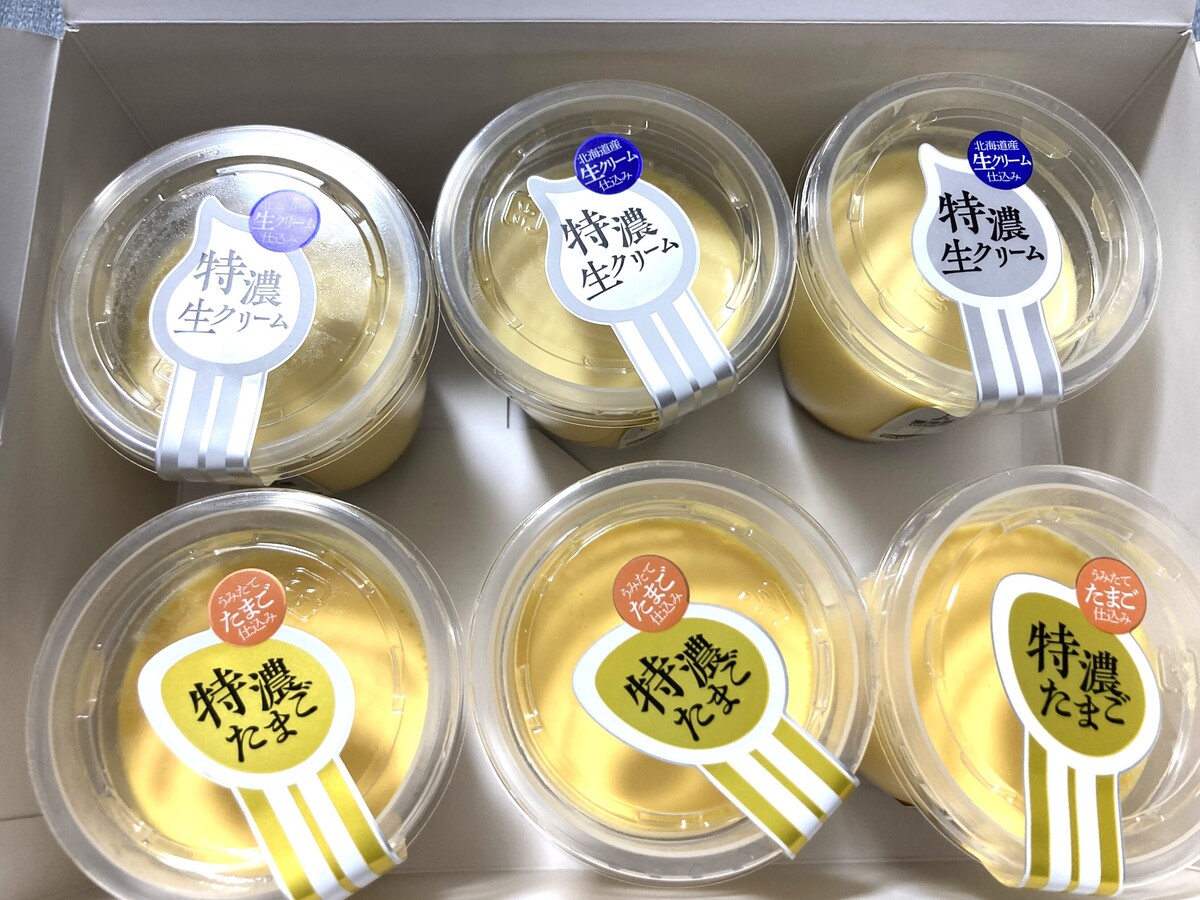 特濃たまごプリンと特濃生クリームプリンが3個ずつ入ったセットで、箱入りなのがポイント。