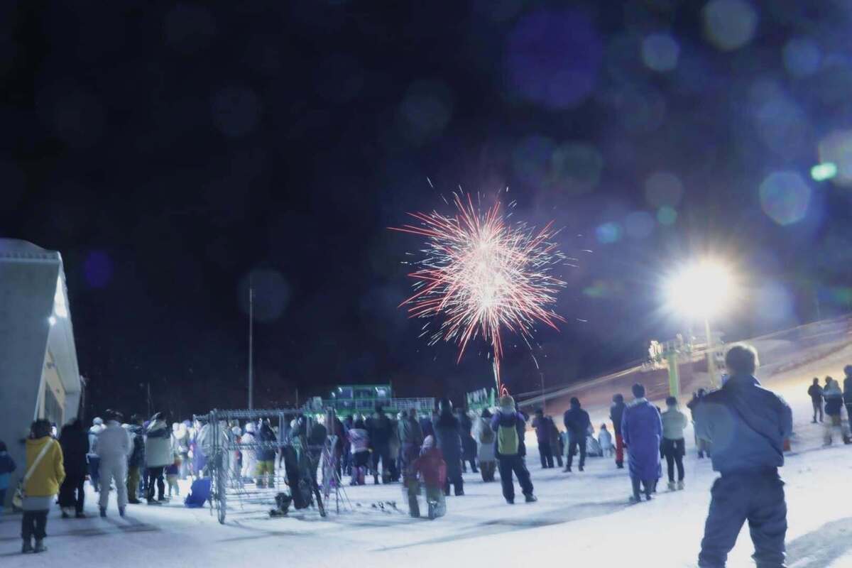 スキー場の夜空に打ちあがる大迫力の花火をゲレンデから鑑賞できますよ♪