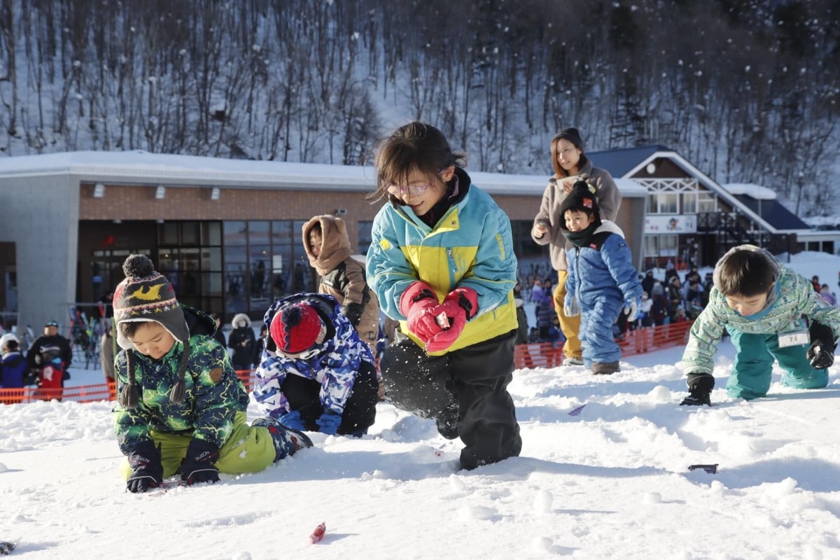 会場内では小学生以下を対象とした雪中運動会も開催され、宝さがしや的あて、スノーフラッグ、鬼ごっこなどが行われます。