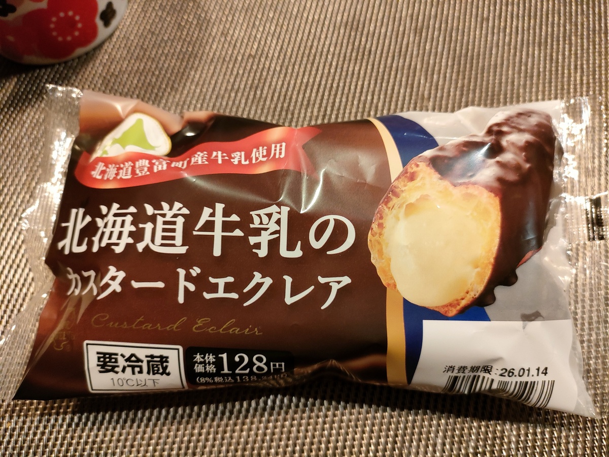 まずご紹介するのは、我らが北海道地場チェーンの「セイコーマート」さんの商品「北海道牛乳のカスタードエクレア」です。