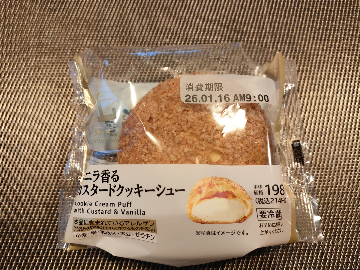 続いてご紹介するのは、「ローソン」さんの商品「バニラ香るカスタードクッキーシュー」です。