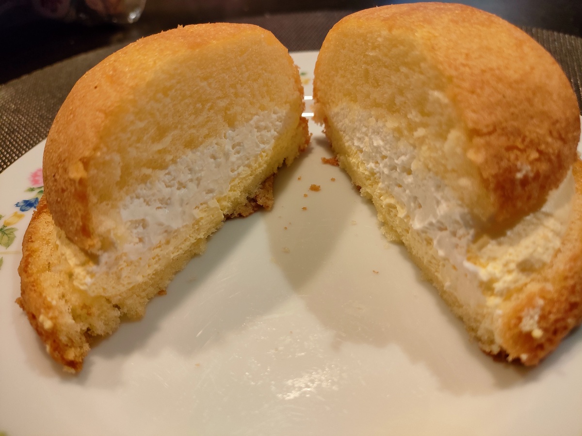 形状はシュークリームをシフォン生地で作ったような感じでしょうか。