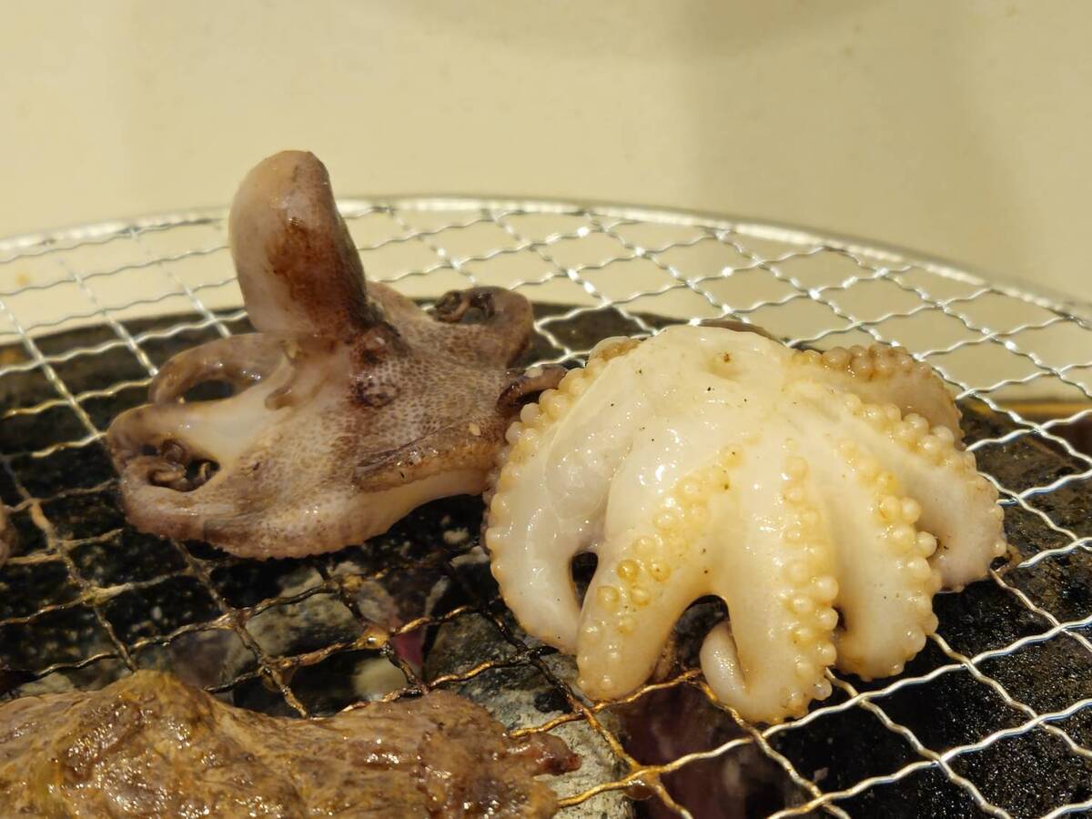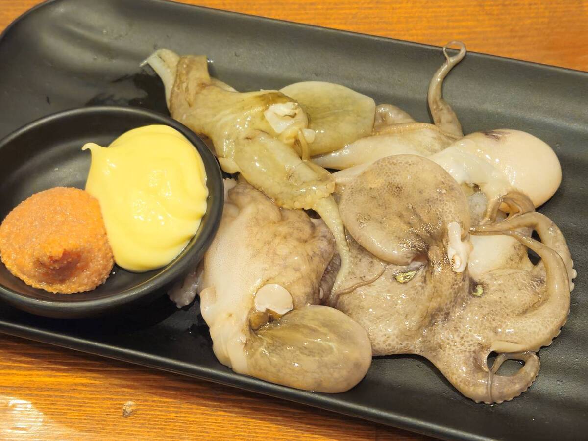 イイダコを丸焼きにできるメニューで、明太マヨあり、なしも選択できます。