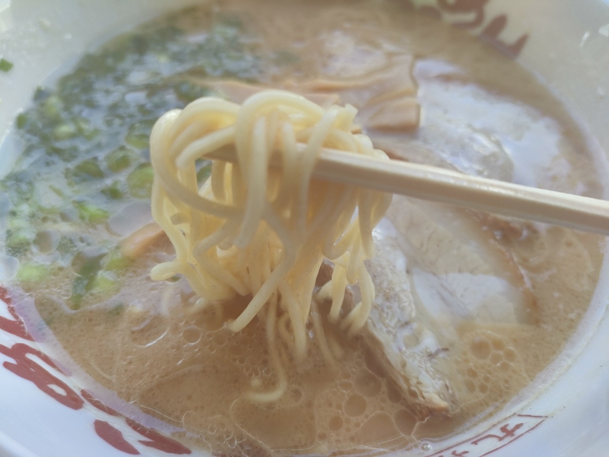 麺はストレートの細麵です。硬めに茹でていただきました。