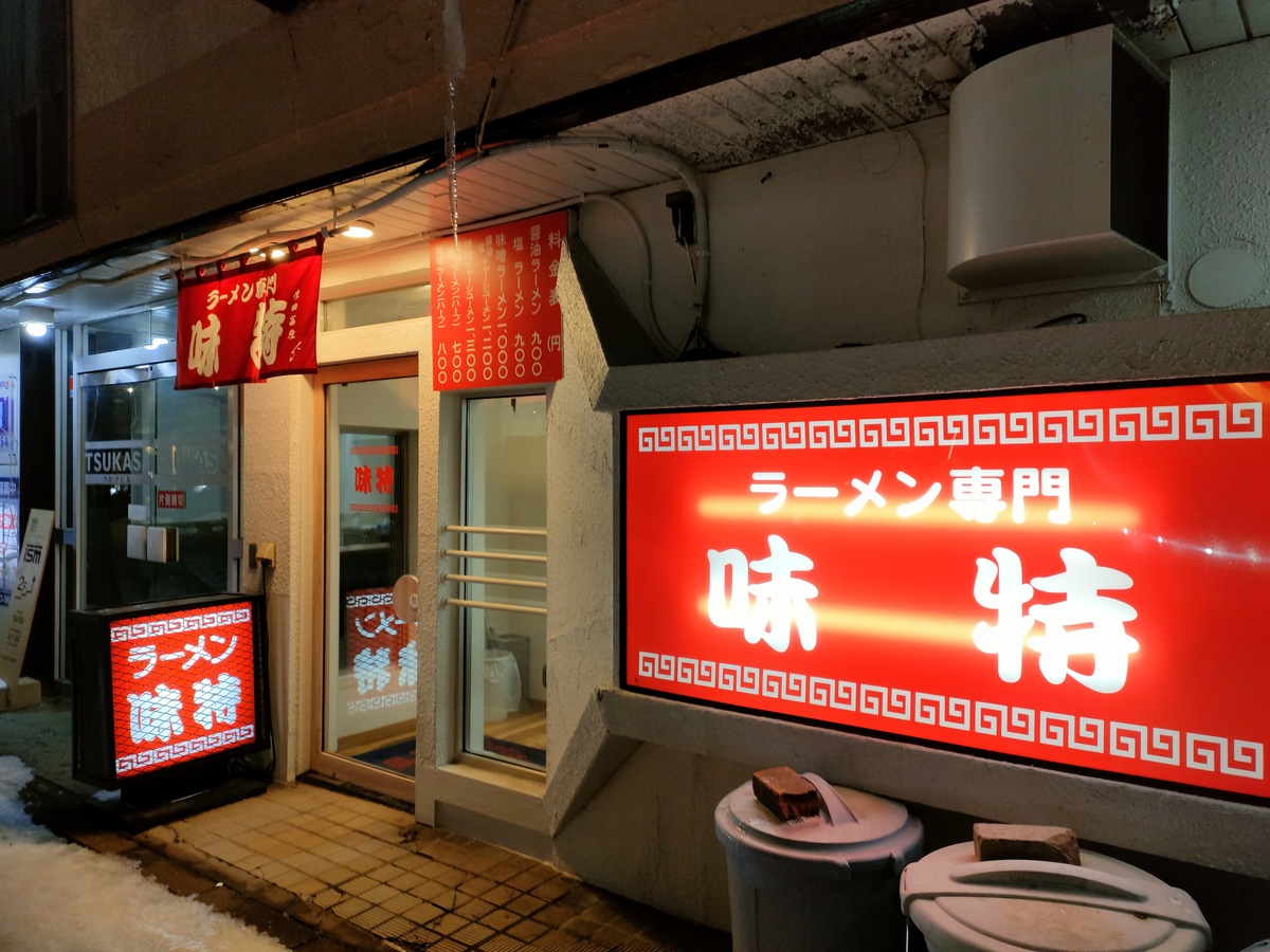 飲み屋街の中で、本格的な旭川ラーメンが味わえる味特さん。
