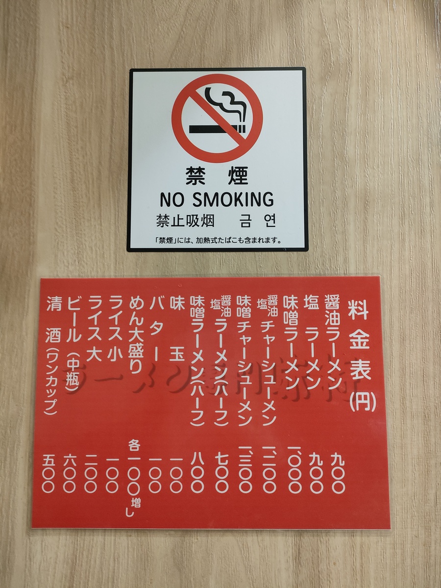 メニューは味噌・塩・醤油と、こちらも昔ながらのラーメン屋さんという感じですね。