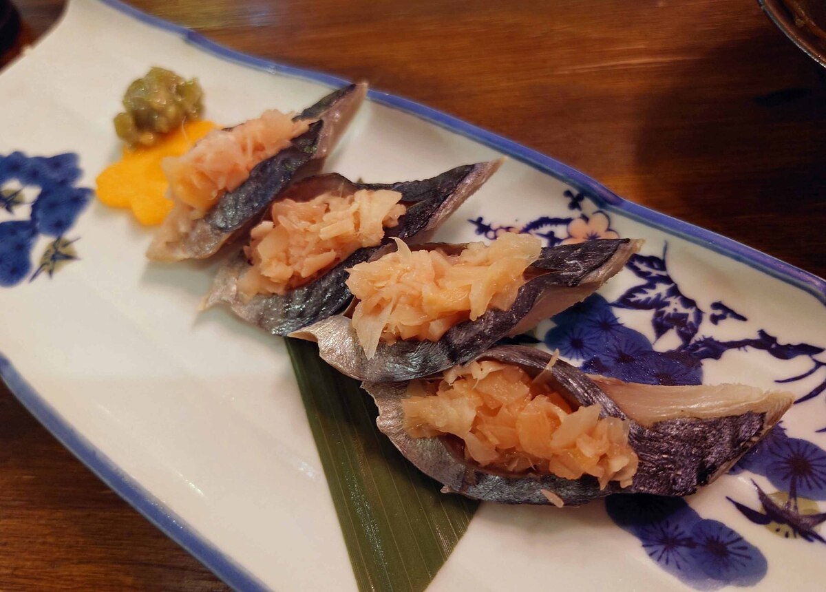 優しく締めた鯖の中に刻みガリを詰めるという、なかなか手の込んだ一品。