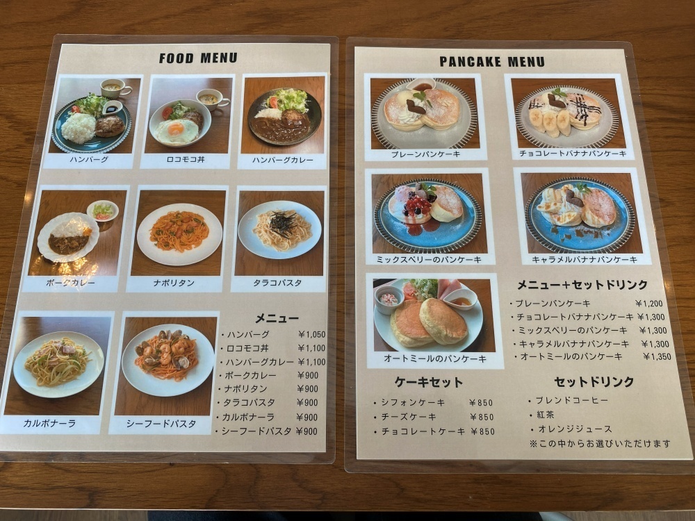 パンケーキの他には、ハンバーグやロコモコ丼、カレー、スパゲッティなどの食事系のメニューもあります。