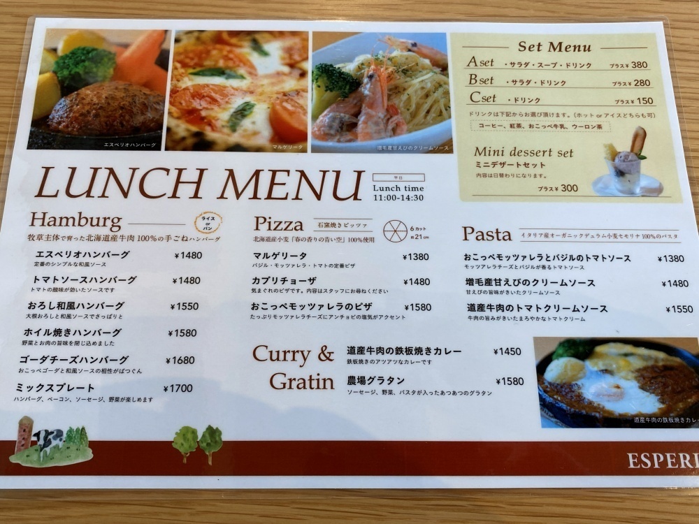 「エスペリオ」は、動物園通り沿いの東旭川町上兵村にある地元民にも観光客にも人気のレストランです。