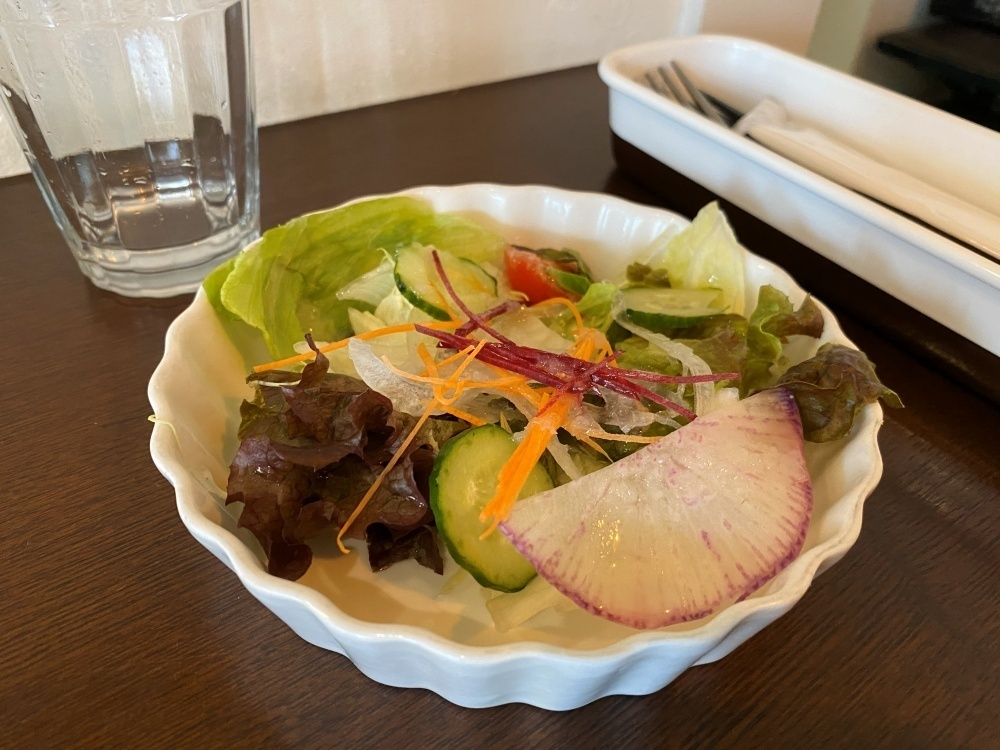 ランチメニューには、ドリンクとサラダが付いています。
