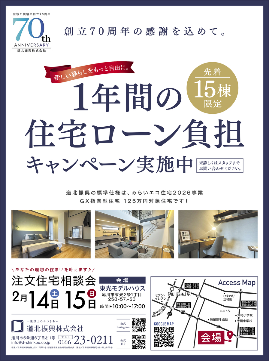 2026年2月14日(土)、15日(日)に旭川市東光で道北振興株式会社の『注文住宅相談会』が開催されます。