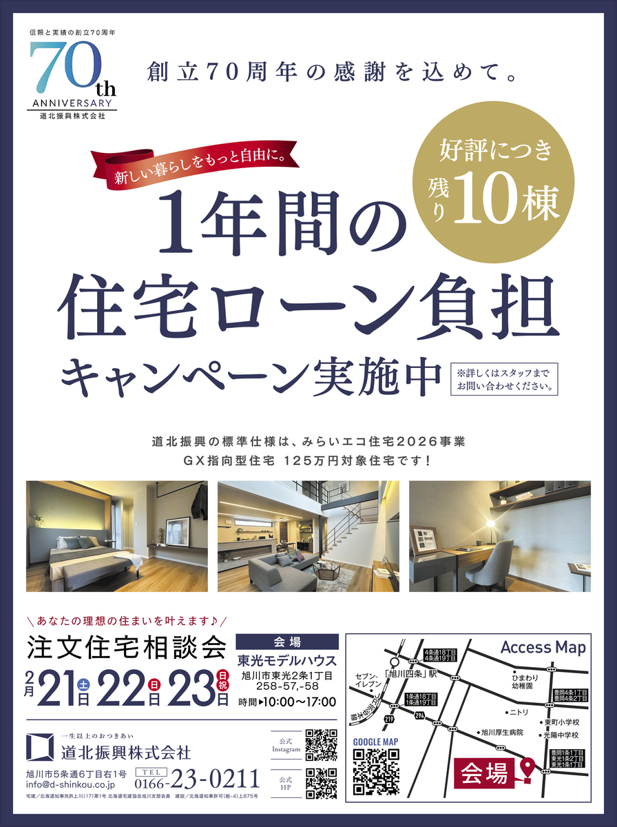 2026年2月21日(土)、22日(日)、23日(月・祝)に旭川市東光で道北振興株式会社の『注文住宅相談会』が開催されます。