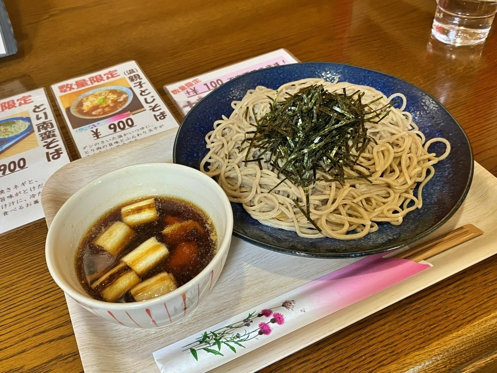 この日は、数量限定の「とり南蛮そば」を二八そばで注文しました。そばは、100円を追加すると十割に変更することもできます。
