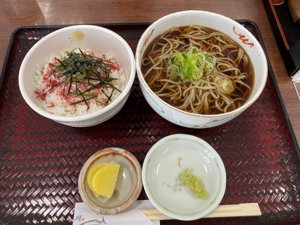 この日はご飯ものも食べたくて、「ミニ丼とおそばのセット」を注文しました。「ミニ丼とおそばのセット」のミニ丼は、野菜天丼・豚丼・えび重の3種類。