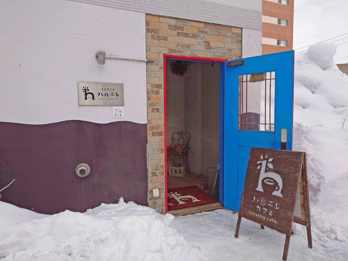 旭川市7条通の緑道脇にある「ハルニレカフェ」。