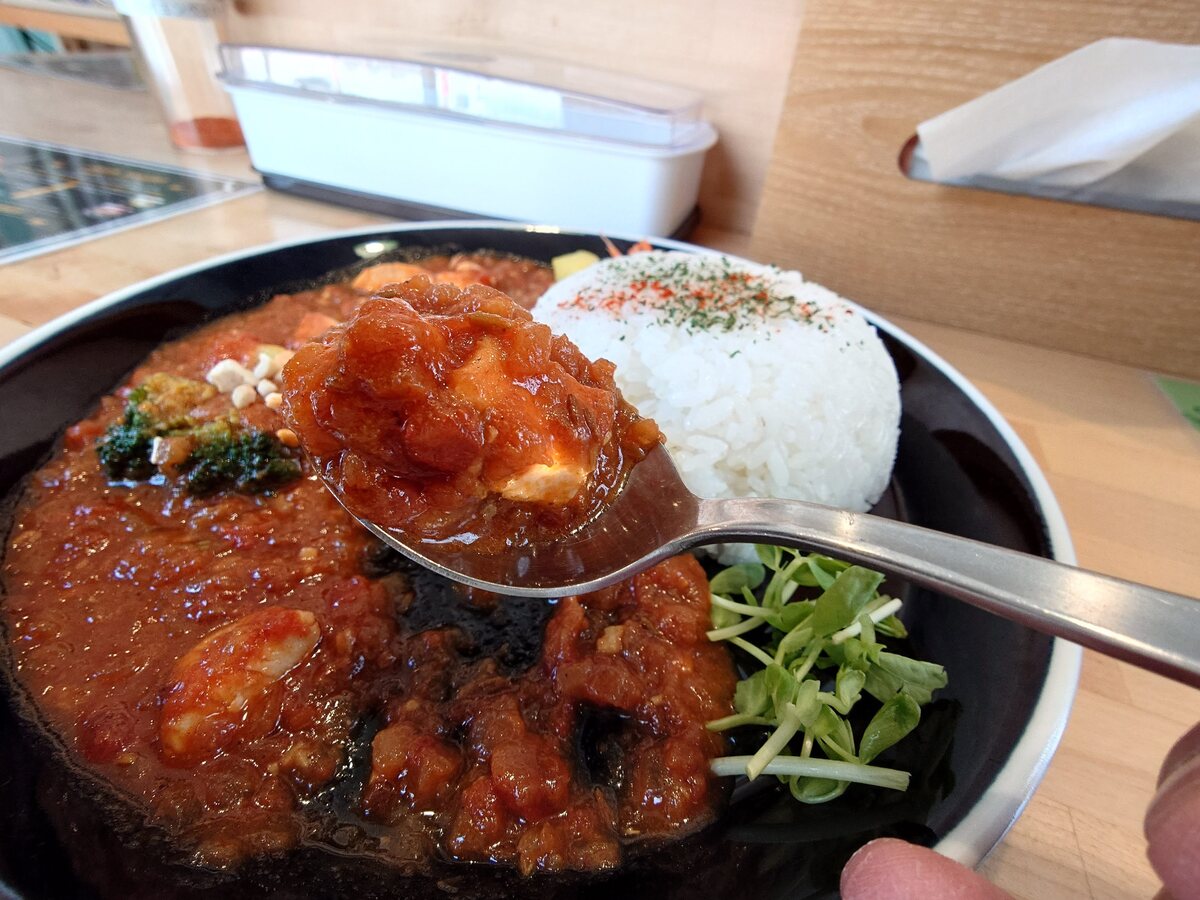 辛さは控えめで、スパイスの風味をじっくり楽しめる優しい仕上がり。