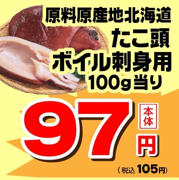 足よりも柔らかく、旨味が強いたこ頭は薄くスライスしてわさび醤油でぶつ切りにして唐揚げやたこ焼きにも!