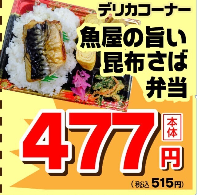 デリカコーナーのイチオシは「魚屋のうまい昆布さば弁当」!