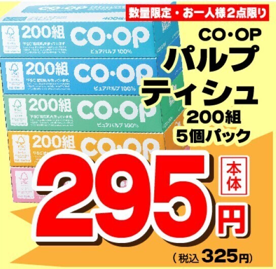 CO-OPのパルプティッシュは「200組」の5コパックです。