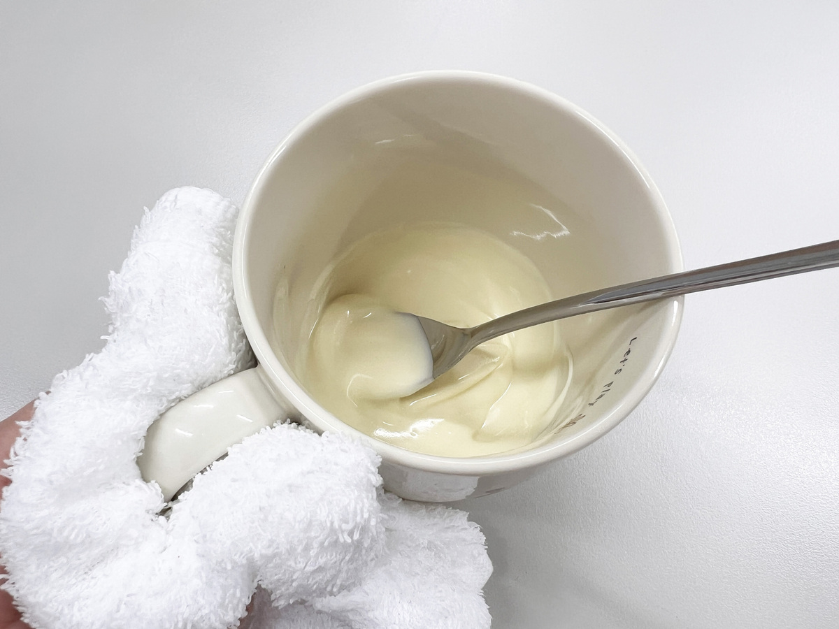 よくかきまぜて、溶けていなけれは10秒ずつ加熱してまぜる