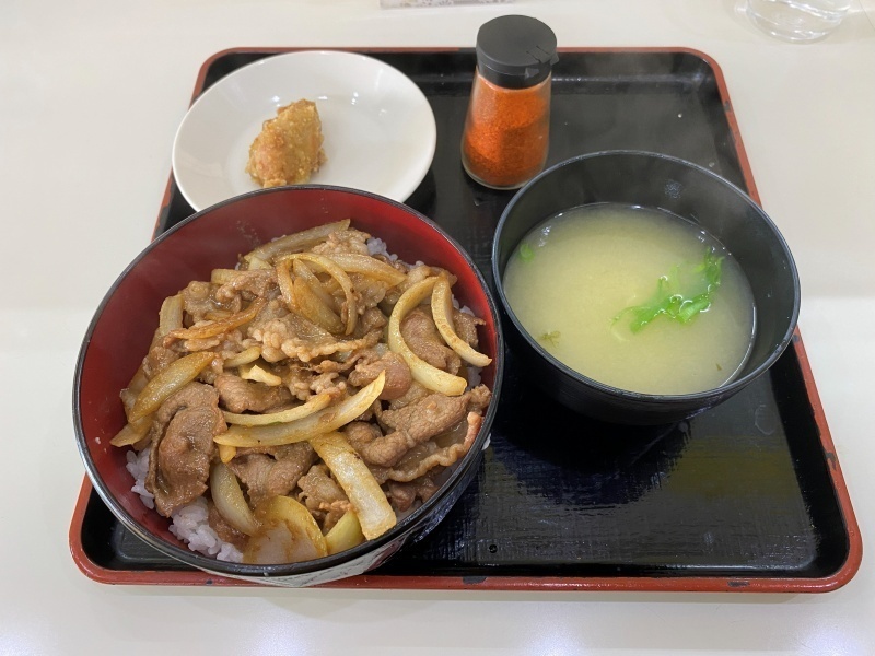 この日注文したのは「ジンギスカン丼」です。ごはんの上には、ジンギスカンと玉ねぎがたっぷりのっています。ジンギスカンはやわらかくて、味付けがおいしいです。さすが肉を知り尽くした食肉加工会社の食堂です。