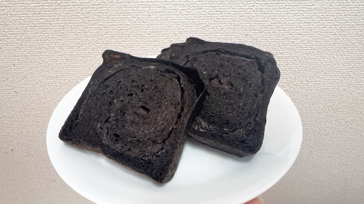 結構ビターなパンでそのまま食べるとチョコの食感を楽しみつつ、パンのふんわり食感を味わうことができます。