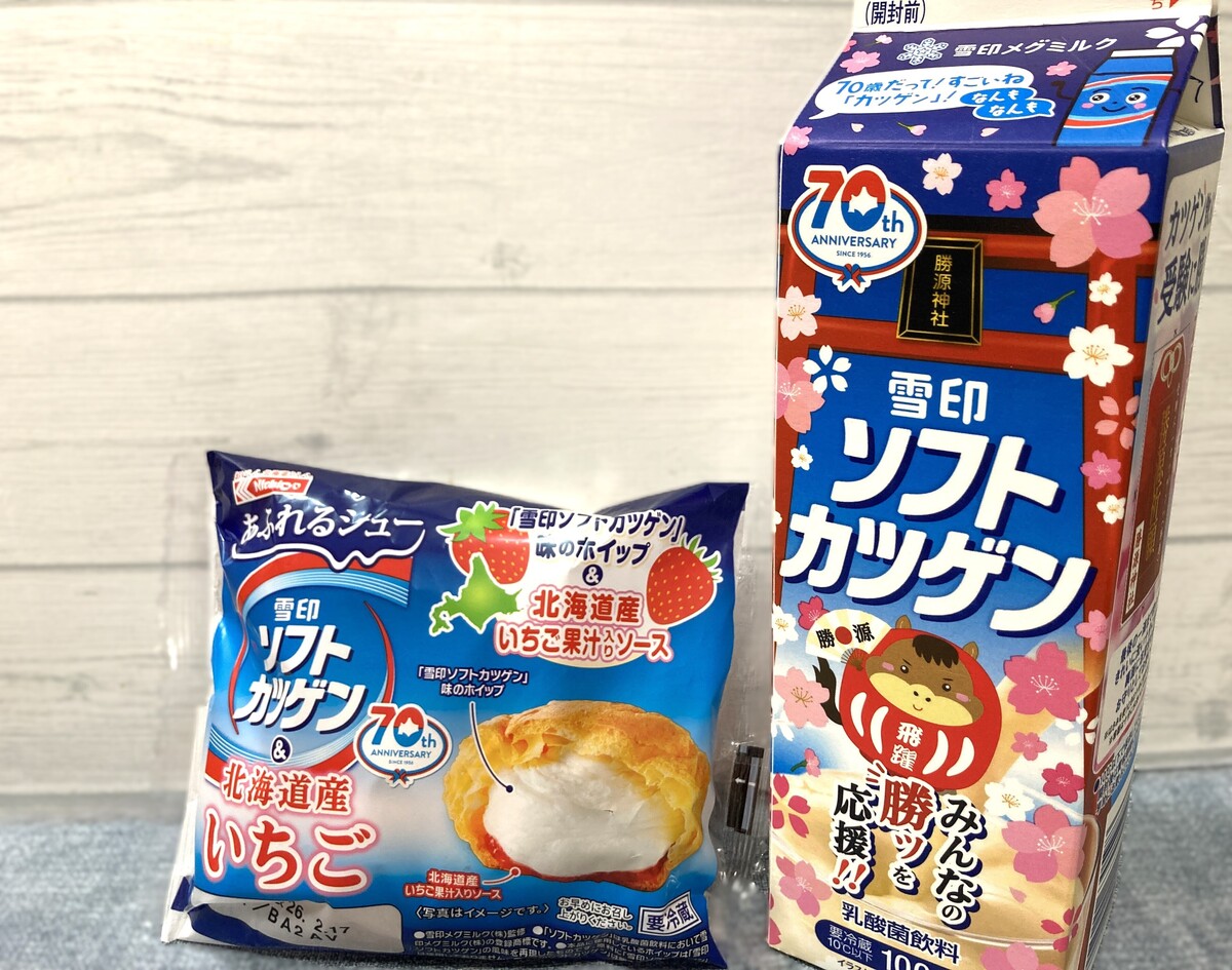 ■雪印メグミルク「ソフトカツゲン」と日糧製パン「あふれるシュー ソフトカツゲン&北海道産いちご」