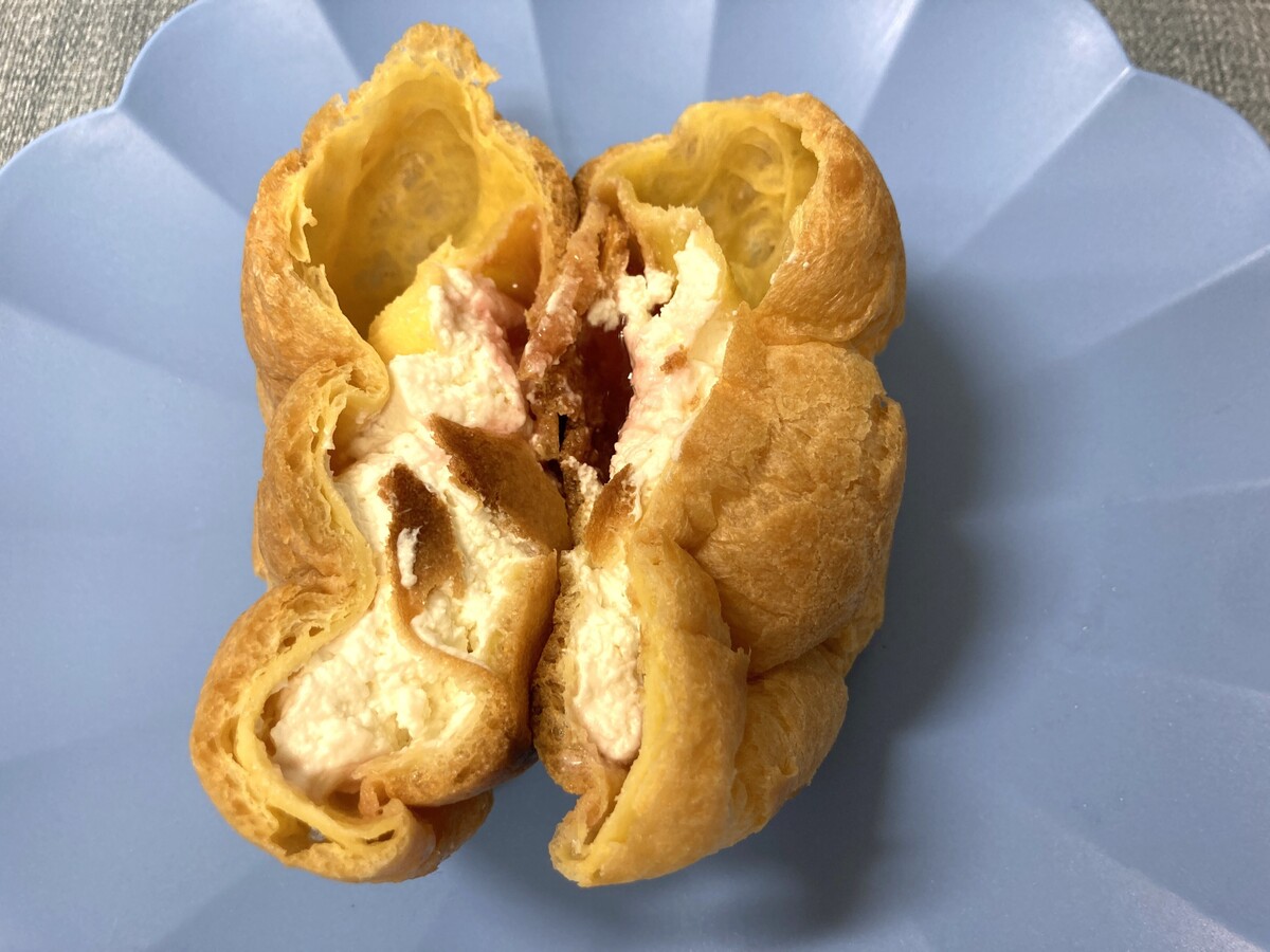しっとりとしたシュー生地の中に、カツゲン風味のホイップといちごソースがたっぷり入っていて、甘酸っぱさが春らしい味わいです。
