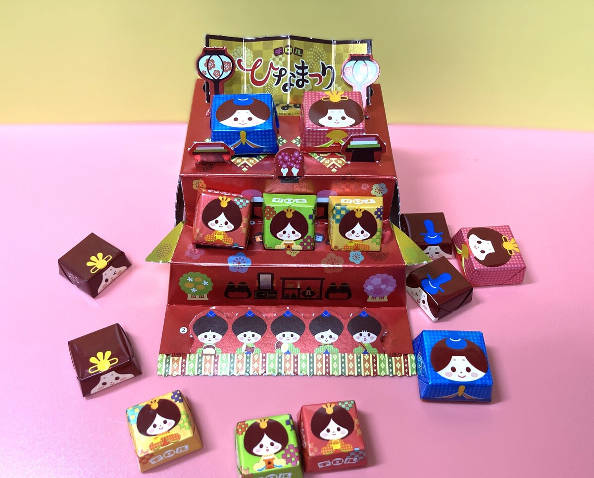 箱を組み立てると小さなチョコたちが“ひな壇”に大変身!