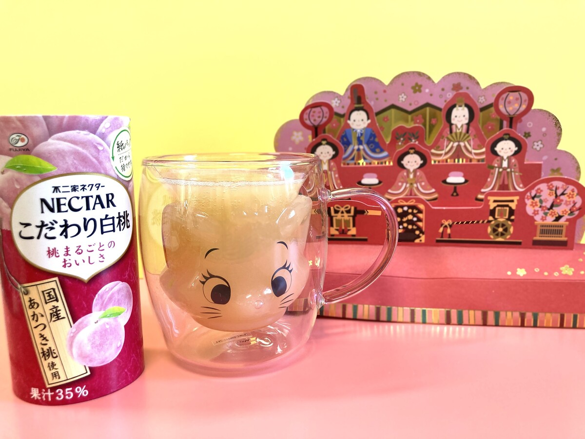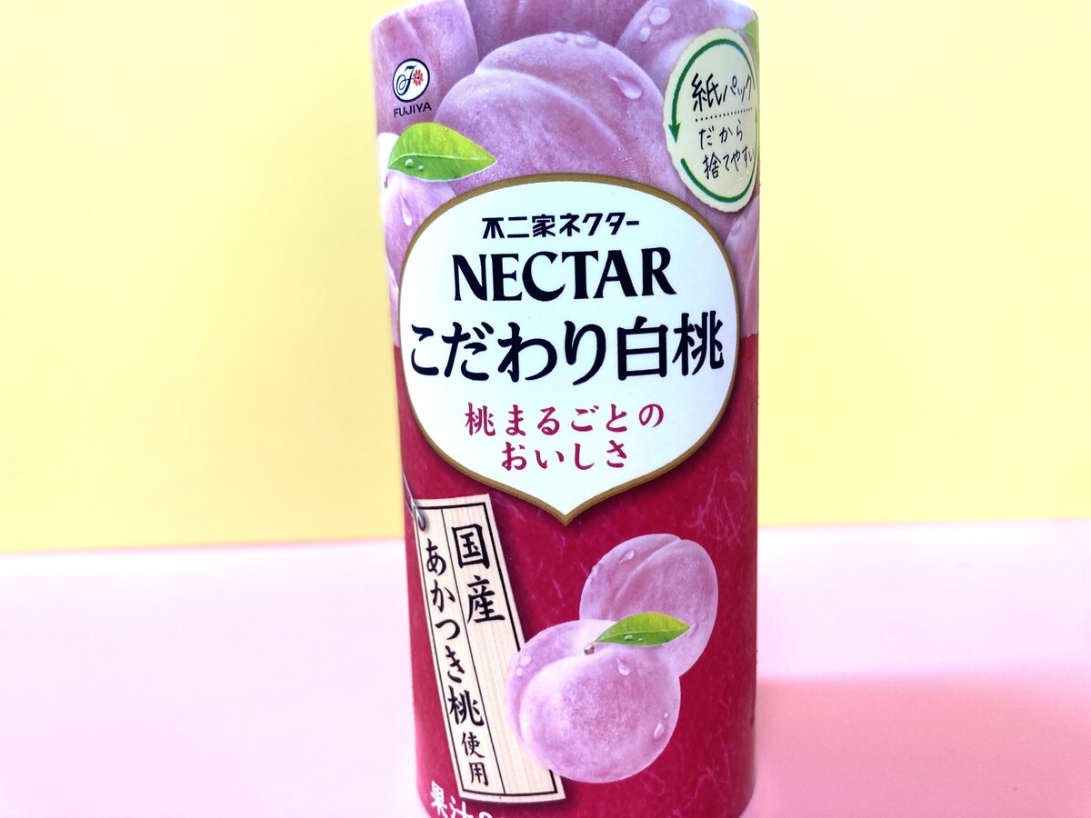 国産白桃「あかつき」を35%使用しているネクターは、とろりと濃厚で、でも飲みやすいまろやかな味。