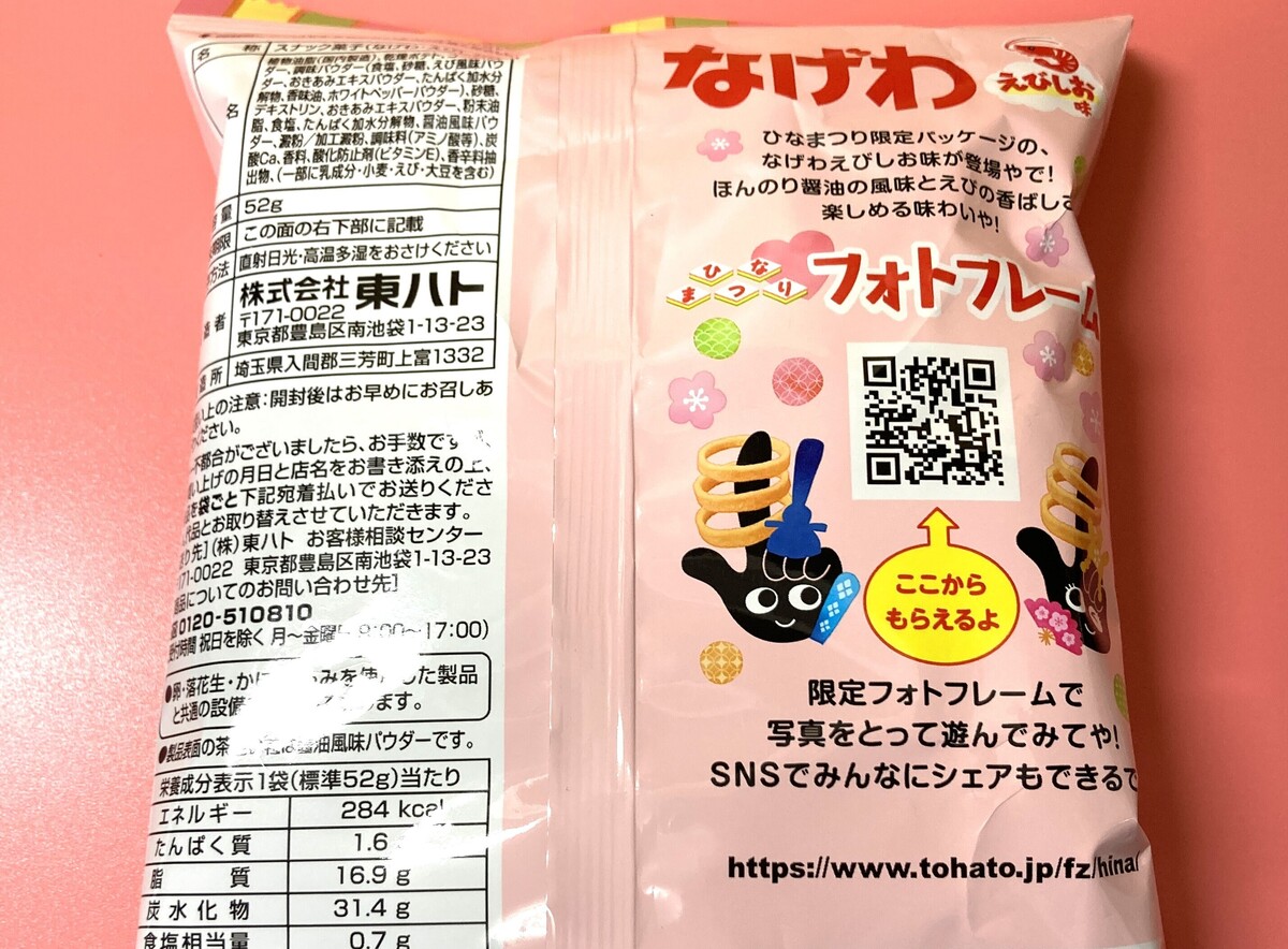 ■東ハト「なげわ・えびしお味(ひなまつり)」